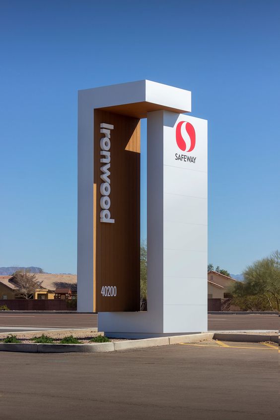 口字形的立柱標識,白色字與太陽燈光效果的對比作用。