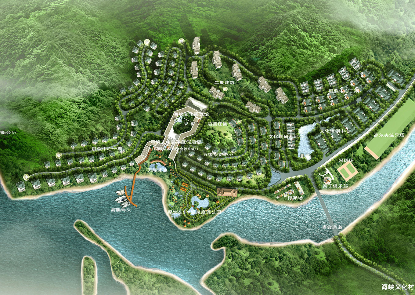 福州海峽文化村度假景區項目位于福建省福州市貴安溫泉旅游度假區東側,地處古碑曰“青甲池”之境。南北長1000米,東西寬約450米,北臨敖江,南側有西溪貫穿南北,東、南兩面環山。