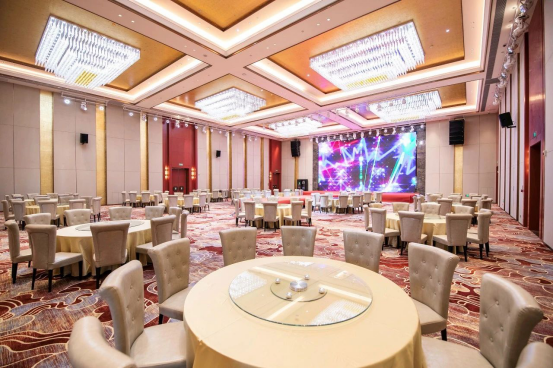 酒店擁有2間豪華宴會大廳,配備有貴賓接待室、4個不同規格會議室。設施設備齊全,且擁有現代化的頂尖數字會議指示系統、投影系統及最先進的燈光音響設備。